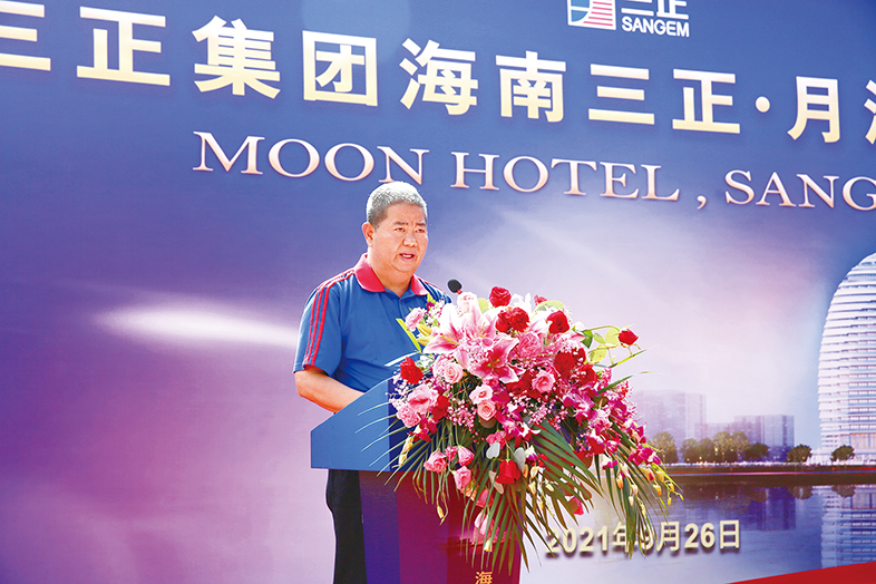 莫浩棠董事長在致辭中表示,自1993年我們三正集團涉足酒店業以來,我就一直有兩個夢想:第一個是溫泉酒店夢,第二個是一線海景酒店夢。第一個溫泉酒店夢得天公地主厚愛,已在2018年隨著塘廈三正半山酒店升級為塘廈三正半山溫泉酒店后已經實現;今天隨著海南三正·月酒店的動工建設,我的一線海景酒店夢的達成也大局初定,夢圓在望。所以,今天無論是對我們三正集團,還是對我本人來說,都是具有特殊意義的日子。