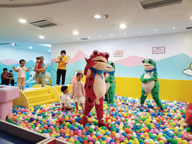 “一翁一蛙一扁擔(dān),兩筐菡萏惹人羨,贈(zèng)君一支映日荷,荷香飄逸半山情”。在《荷塘月色》背景音樂(lè)的氛圍中,身穿漢服的老翁肩挑竹筐,筐里擺放新鮮的荷花,身后跟著一群蹦蹦跳跳可愛(ài)的“小網(wǎng)紅蛙”。他們愉悅地穿梭在酒店的各個(gè)區(qū)域,為客人送上寓意 “吉祥如意、好運(yùn)蓮蓮”的荷花,吸引了眾多客人圍觀并合影留念。此外,網(wǎng)紅蛙們還在酒店大堂邀請(qǐng) “小客人”們一起進(jìn)行才藝表演互動(dòng),如:唱歌跳舞、詩(shī)詞背誦等。在萌寶樂(lè)園中,與小朋友們?cè)凇翱铸埧估恰钡木W(wǎng)紅音樂(lè)中一起手舞足蹈地歡快跳舞,大家玩得不亦樂(lè)乎,現(xiàn)場(chǎng)氛圍十分熱鬧,家長(zhǎng)朋友們紛紛拍照分享朋友圈。此活動(dòng)不僅深受大小朋友們的喜愛(ài),而且還提升了酒店的人氣和影響力。