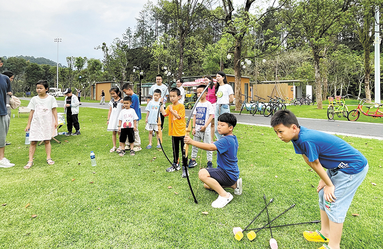在橋頭三正半山酒店,客人說:“這些活動有趣又好玩,孩子們都玩瘋了!”