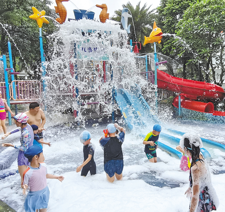 童趣捕魚池里,孩子們挽起褲腿,手持網兜,盡情與水中的魚兒們追逐嬉戲,其樂融融。家長們則用手機記錄下這些寶貴的瞬間,留存美好的記憶。酒店云天水岸泳池更是一片歡樂的海洋,無論是趣味沙灘還是水上歡樂堡,都回響著孩子們的尖叫聲與笑聲。泡泡機打開的那一刻,所有小朋友們都在大聲喊著“下雪啦!下雪啦!”客人都說:“這些活動有趣又好玩,孩子們都玩瘋了!”
