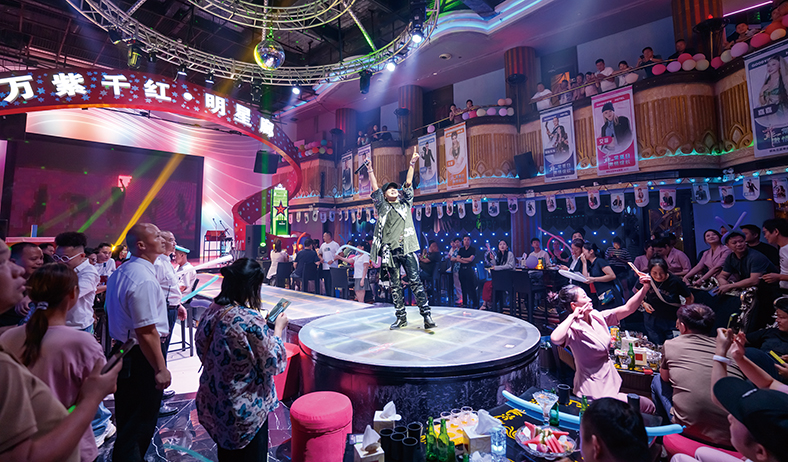8月3日晚,橋頭三正半山酒店萬紫千紅KTV完成升級后盛裝亮相,華語樂壇知名女歌手、“中國夢之聲”季軍艾菲親臨助陣。KTV經過場所裝飾的豐富與提升、氛圍的營造、新電音房的推出及服務品質的全面提升,向市場展現了一個全新的形象?;顒赢斖恚邪考按髲d均座無虛席,在艾菲等歌手的帶動下,賓客們熱情參與互動,現場成了歡樂的海洋。