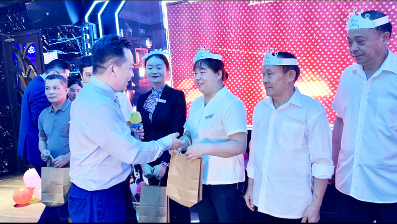 生日會(huì)現(xiàn)場(chǎng)布置溫馨,壽星們共同許愿吹蠟燭,分享定制蛋糕及雙皮奶甜點(diǎn)。趣味互動(dòng)游戲環(huán)節(jié)引發(fā)陣陣歡笑。茶話會(huì)上,總經(jīng)理沈國(guó)民就招聘、設(shè)施維護(hù)、服務(wù)提升等議題與各部門員工代表交流,聽取大家意見,現(xiàn)場(chǎng)回應(yīng)員工建議,并要求建立建議落實(shí)機(jī)制。
